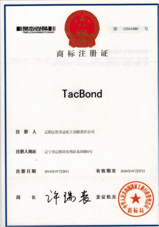 遼陽遼化奇達化工有限責任公司TacBond產(chǎn)品商標已注冊 [ 2015-12-01 ]